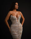 Additionally, crafted to perfection, this gown effortlessly highlights your silhouette, offering a flattering fit that commands attention. The sleeveless style provides freedom of movement. Furthermore, the strapless neckline adds a hint of sophistication, framing your shoulders beautifully.