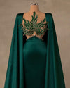 Introducing the epitome of grace and sophistication: the Satin Green Dress with Cape. Additionally this enchanting gown is a testament to timeless beauty, meticulously designed to leave an indelible mark at any occasion.