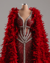 This gown is the perfect blend of sultry and sophisticated, making it ideal for high-profile events, red carpets, or extravagant performances. The combination of feathers, crystals, and structured embellishments makes it a show-stopping creation, designed for those who want to command attention and embody confidence, power, and allure.
