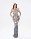 Perfect for galas, formal evenings, luxury events, and statement occasions, this gown is made for those who want to stand out with timeless sophistication. The combination of sparkling embellishments, tailored structure, and dynamic texture makes this piece both bold and graceful. A true statement dress, it embodies confidence, elegance, and unforgettable style.