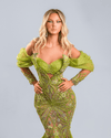 Ideal for garden-themed soirées, red carpet events, or any moment you wish to own with poise and grace, this off-shoulder light green gown is all about soft glamour and timeless charm. It’s a dress that speaks to the modern muse—elegant, fresh, and undeniably radiant.