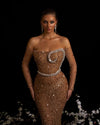 Yet, what truly sets this Off Shoulder Dress apart is its extraordinary embellishment. Furthermore the entire garment sparkles with glistening stones that capture and reflect light from every angle. Moreover it's as if a thousand stars descend to dance with every move.