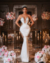 Additionally, adorned with crystals, this Bridal Dress glistens with every movement, casting a glow that captivates all who behold it. The intricate embellishments add a touch of glamour and sophistication, ensuring you shine like a star on your special day.