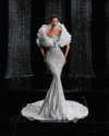 What sets this gown apart is its sculptural 3D shoulder detail—a dramatic, avant-garde embellishment that adds depth, dimension, and a couture edge. The shoulder design is both bold and graceful, evoking a sense of regal grandeur while maintaining a feminine delicacy.