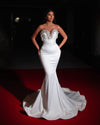 The dress is further complemented by a sweetheart neckline and subtle cap sleeves, adding to its timeless appeal. The clean lines and sophisticated structure of the dress are ideal for brides who want a refined yet striking look. Whether for a grand wedding or an intimate celebration, the Cindy Bridal Dress with Pearls exudes classic beauty, making it the perfect choice for a bride seeking an unforgettable entrance
