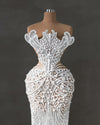 Behold the epitome of elegance and timeless beauty in this strapless and Sleeveless Bridal Dress. Flowing gracefully to the floor, this enchanting gown captures the essence of sophistication. Additionally, crafted from luxurious lace, the gown exudes an air of opulence and refinement that befits the most special occasion.